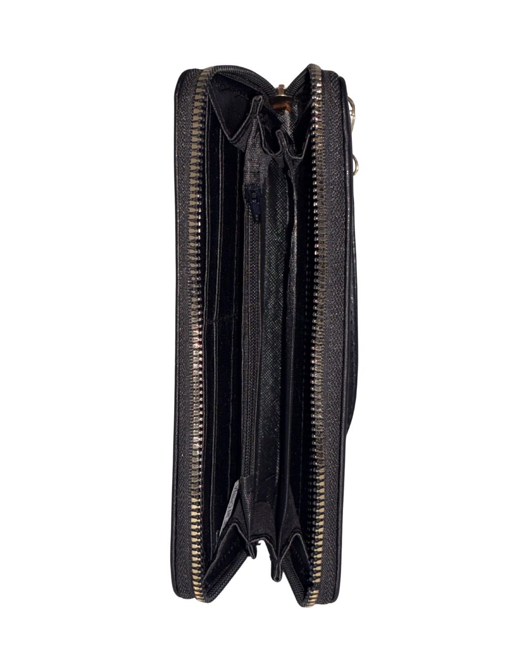 A sophisticated black color women’s wallet that blends style and utility. Crafted from high-quality synthetic or genuine leather, this wallet features a zip-around closure to secure your contents and a spacious interior layout. Inside, you’ll find multiple card slots, several compartments for cash and receipts, and a coin pocket. The sleek design and durable build make it a practical choice for daily use or as a stylish accessory for work and travel.