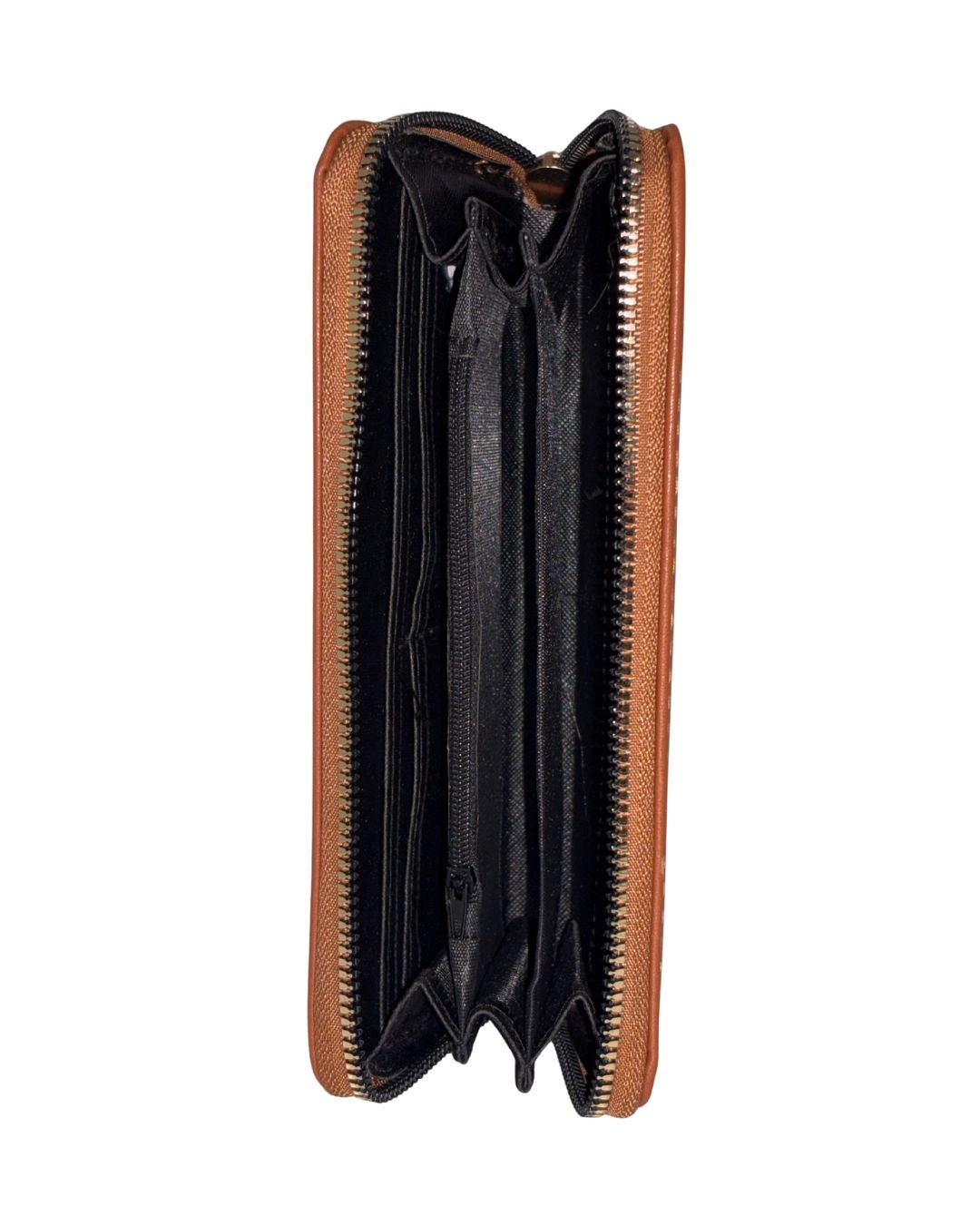 A sophisticated brown color women’s wallet that blends style and utility. Crafted from high-quality synthetic or genuine leather, this wallet features a zip-around closure to secure your contents and a spacious interior layout. Inside, you’ll find multiple card slots, several compartments for cash and receipts, and a coin pocket. The sleek design and durable build make it a practical choice for daily use or as a stylish accessory for work and travel.